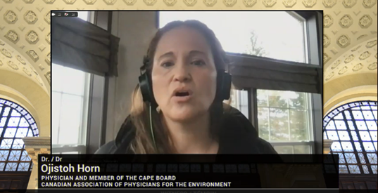 Lors de sa comparution puissante et convaincante devant le Comité sénatorial permanent des affaires étrangères et du commerce international le 12 mai dernier, l’ACME a présenté un témoignage d’expert. La Dre Ojistoh Horn, membre du conseil d’administration de l’ACME a témoigné que : « En tant que médecin indigène travaillant dans ma communauté, je me rends compte des effets à long terme des toxines persistantes dans la terre, l’eau, l’air, les sols, les poissons, les plantes et la faune autour de chez nous… Travaillons tous ensemble, chacun dans son rôle spécifique, pour remplir notre mission collective envers l’avenir ».